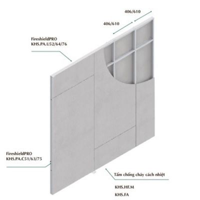 Là lớp vật liệu chính của vách ngăn cháy, được làm từ thạch cao có khả năng chịu lửa cao.